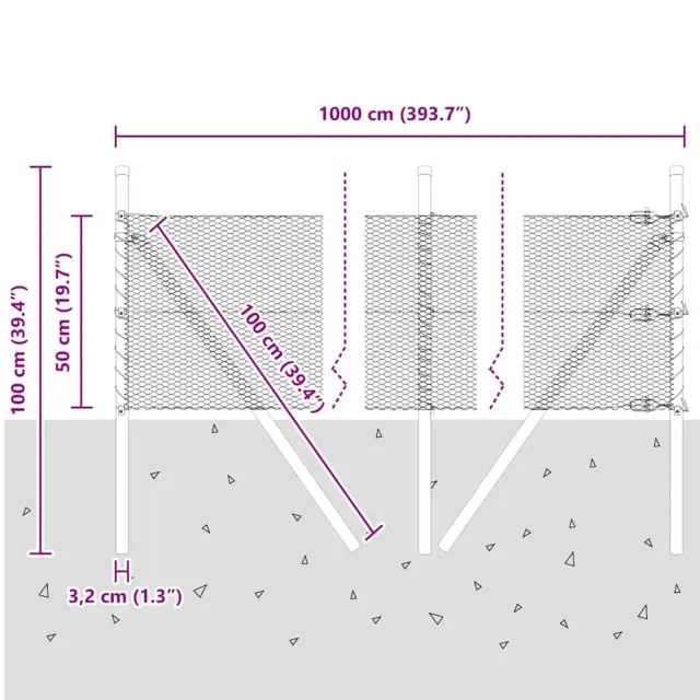 vidaXL Ogrodje s stebri srebrna 0.5 x 10 m Jeklo s PVC premazom