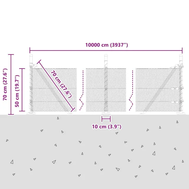 vidaXL Ogrodje s stebri srebrna 0.5 x 100 m Jeklo s PVC premazom