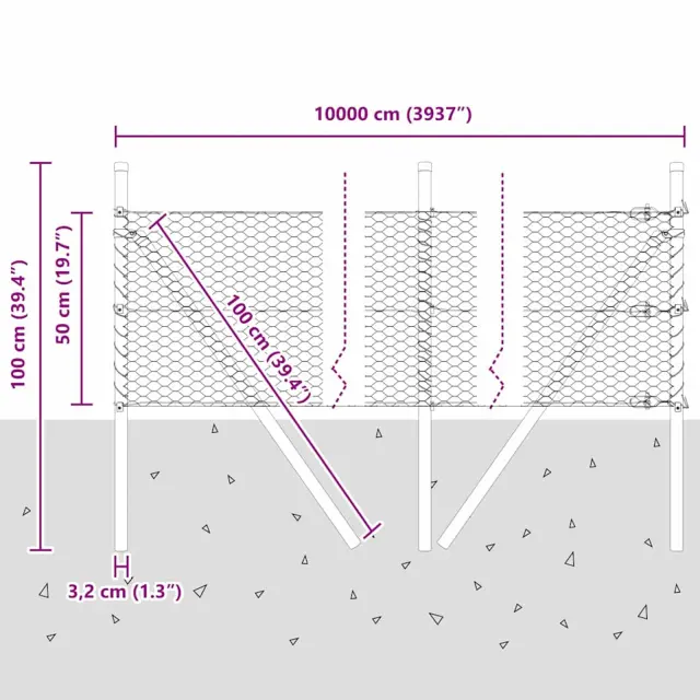 vidaXL Ogrodje s stebri srebrna 0.5 x 100 m Jeklo s PVC premazom