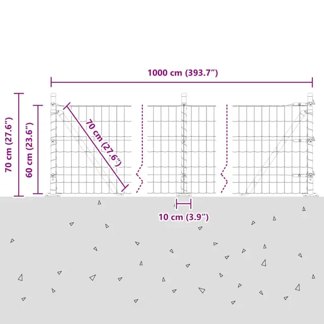 vidaXL Ogrodje s stebri srebrna 0.6 x 10 m Jeklo