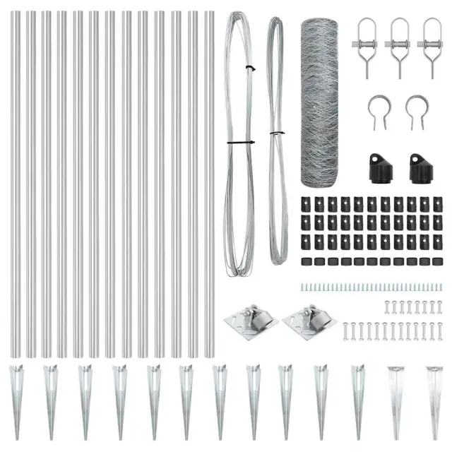 vidaXL Ogrodje s stebri srebrna 0.6 x 25 m Jeklo s PVC premazom