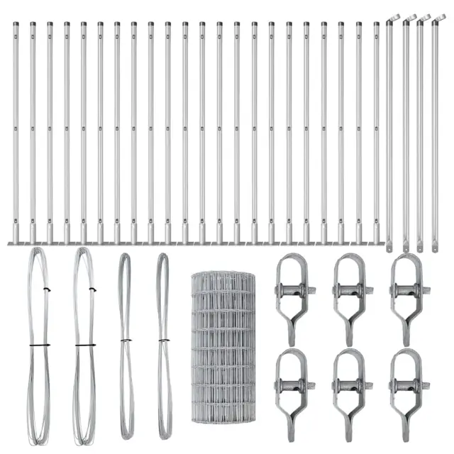 vidaXL Ogrodje s stebri srebrna 0.6 x 50 m Jeklo