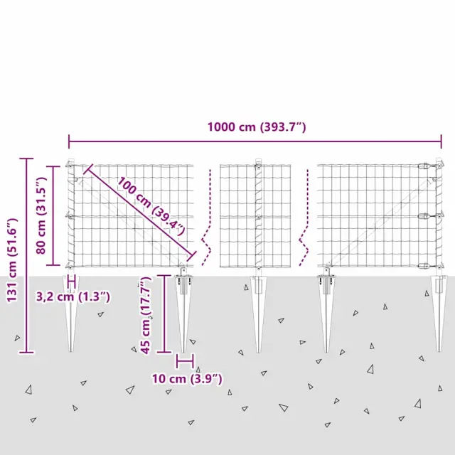 vidaXL Ogrodje s stebri srebrna 0.8 x 10 m Jeklo