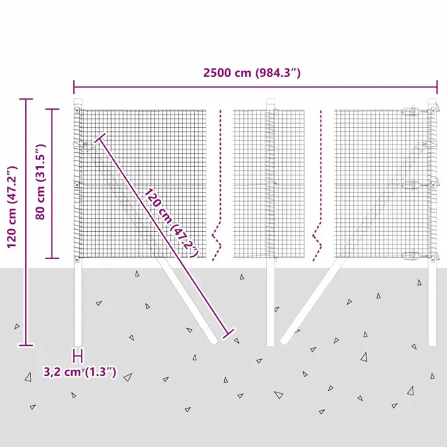 vidaXL Ogrodje s stebri srebrna 0.8 x 25 m Jeklo