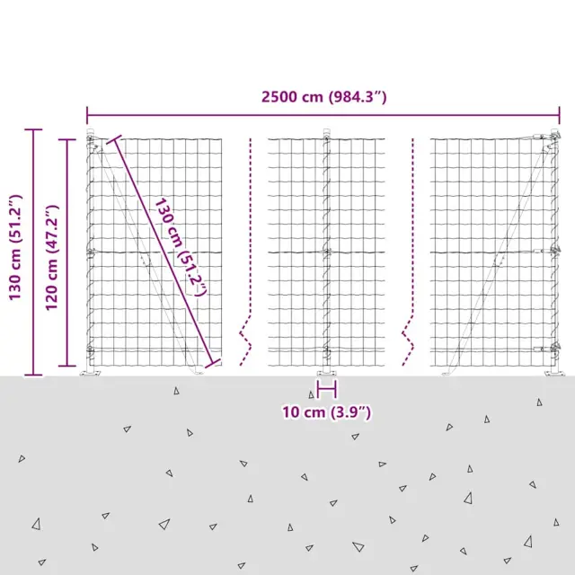 vidaXL Ogrodje s stebri srebrna 1.2 x 25 m Jeklo