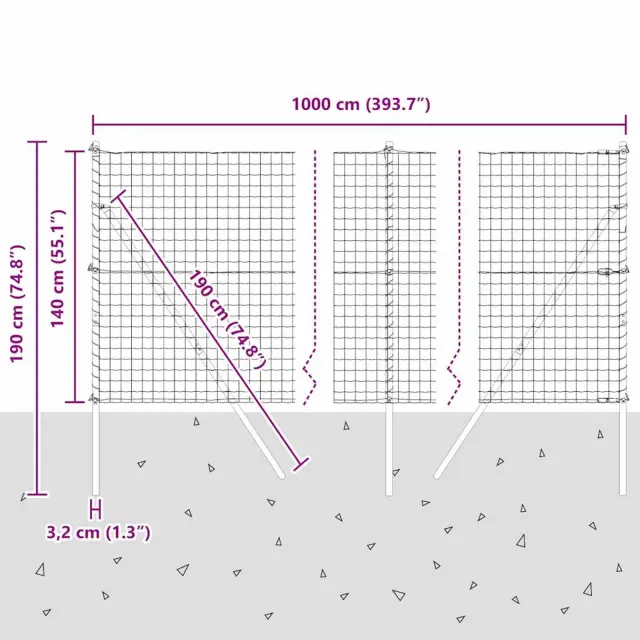 vidaXL Ogrodje s stebri srebrna 1.4 x 10 m Jeklo