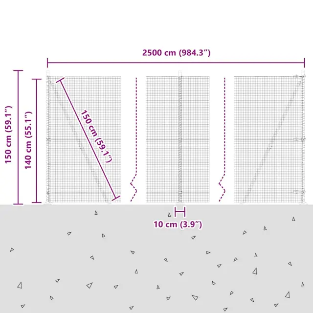 • Splošne dimenzije: 2500 x 3.2 x 140 cm (D x Š x V)