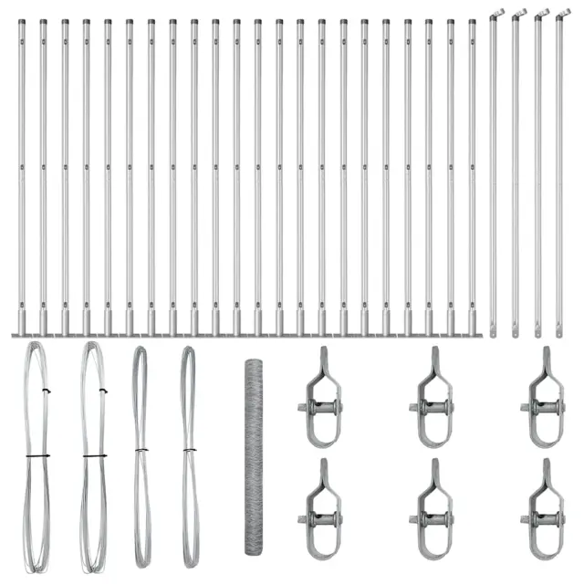 vidaXL Ogrodje s stebri srebrna 1.4 x 50 m Jeklo s PVC premazom