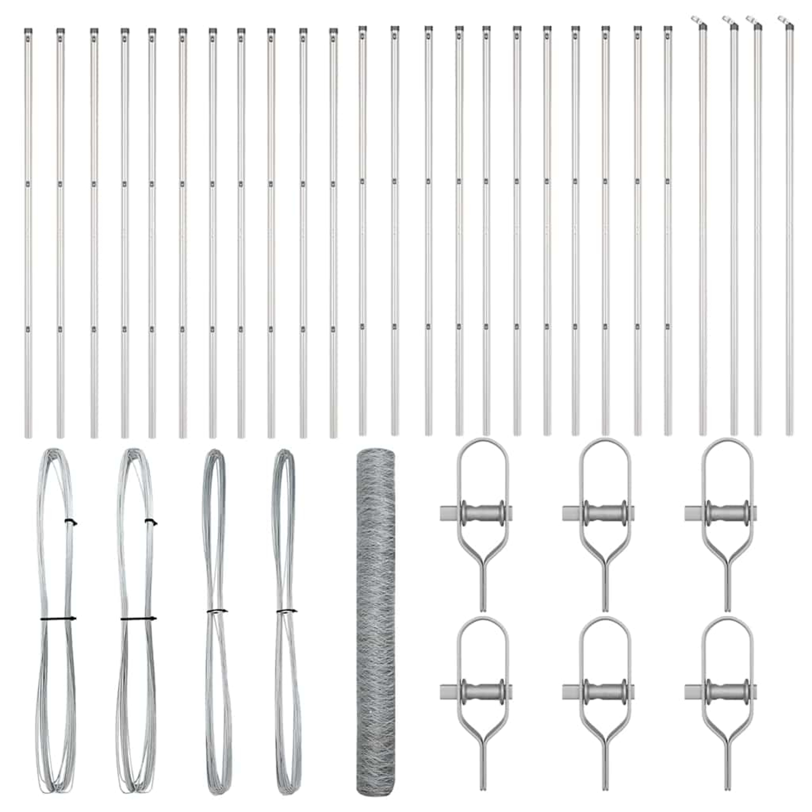 vidaXL Ogrodje s stebri srebrna 1.4 x 50 m Jeklo s PVC premazom