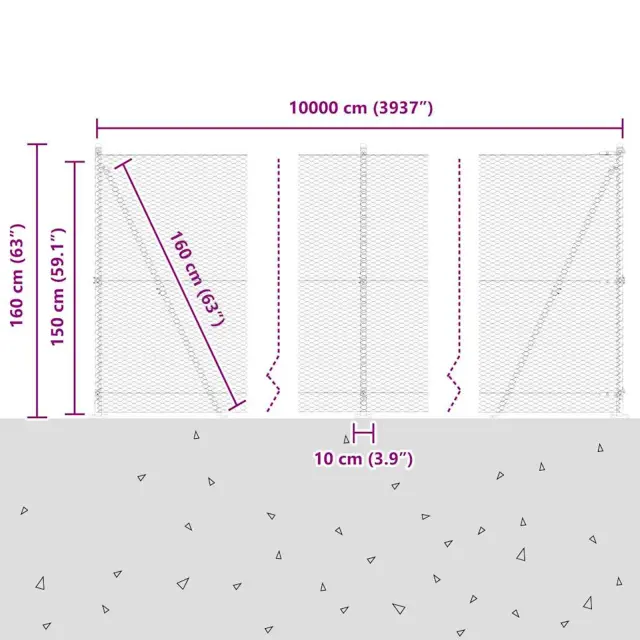 • Splošne dimenzije: 10000 x 3.2 x 150 cm (D x Š x V)