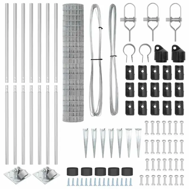 vidaXL Ogrodje s stebri srebrna 1.6 x 10 m Jeklo