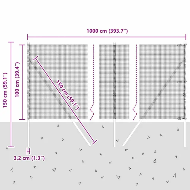 • Splošne dimenzije: 1000 x 3.2 x 100 cm (D x Š x V)