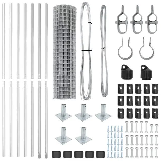 vidaXL Ogrodje s stebri srebrna 1 x 10 m Jeklo