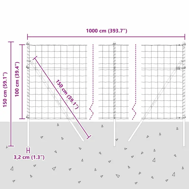 • Splošne dimenzije: 1000 x 3.2 x 100 cm (D x Š x V)