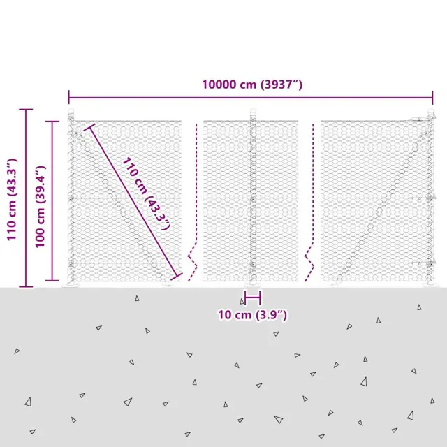 • Splošne dimenzije: 10000 x 3.2 x 100 cm (D x Š x V)
