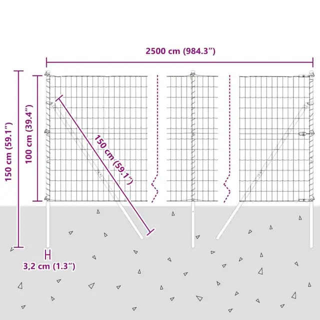 • Splošne dimenzije: 2500 x 3.2 x 100 cm (D x Š x V)