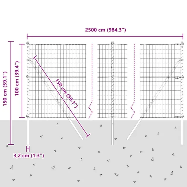 • Splošne dimenzije: 2500 x 3.2 x 100 cm (D x Š x V)