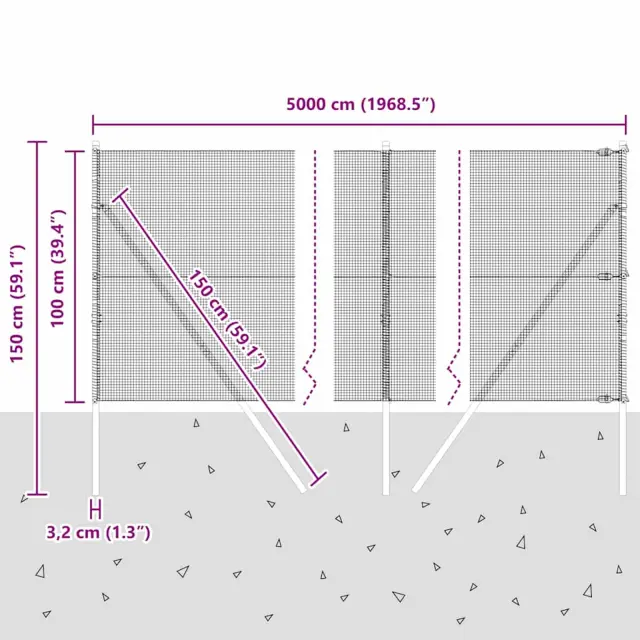 • Splošne dimenzije: 5000 x 3.2 x 100 cm (D x Š x V)