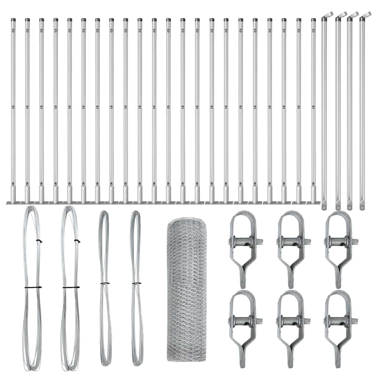 vidaXL Ogrodje s stebri srebrna 1 x 50 m Jeklo s PVC premazom