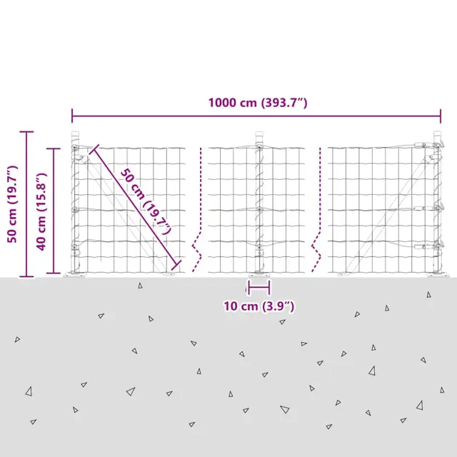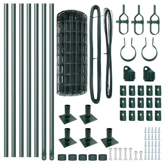 vidaXL Ogrodje s stebri Zelena 0.4 x 10 m Jeklo