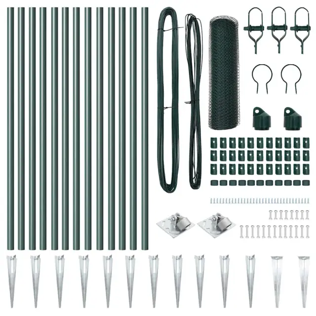 vidaXL Ogrodje s stebri Zelena 0.4 x 25 m Jeklo s PVC premazom