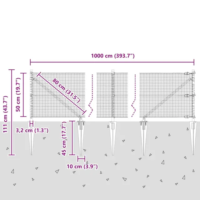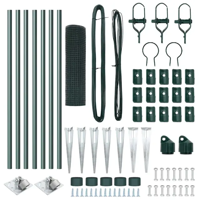 vidaXL Ogrodje s stebri Zelena 0.5 x 10 m Jeklo