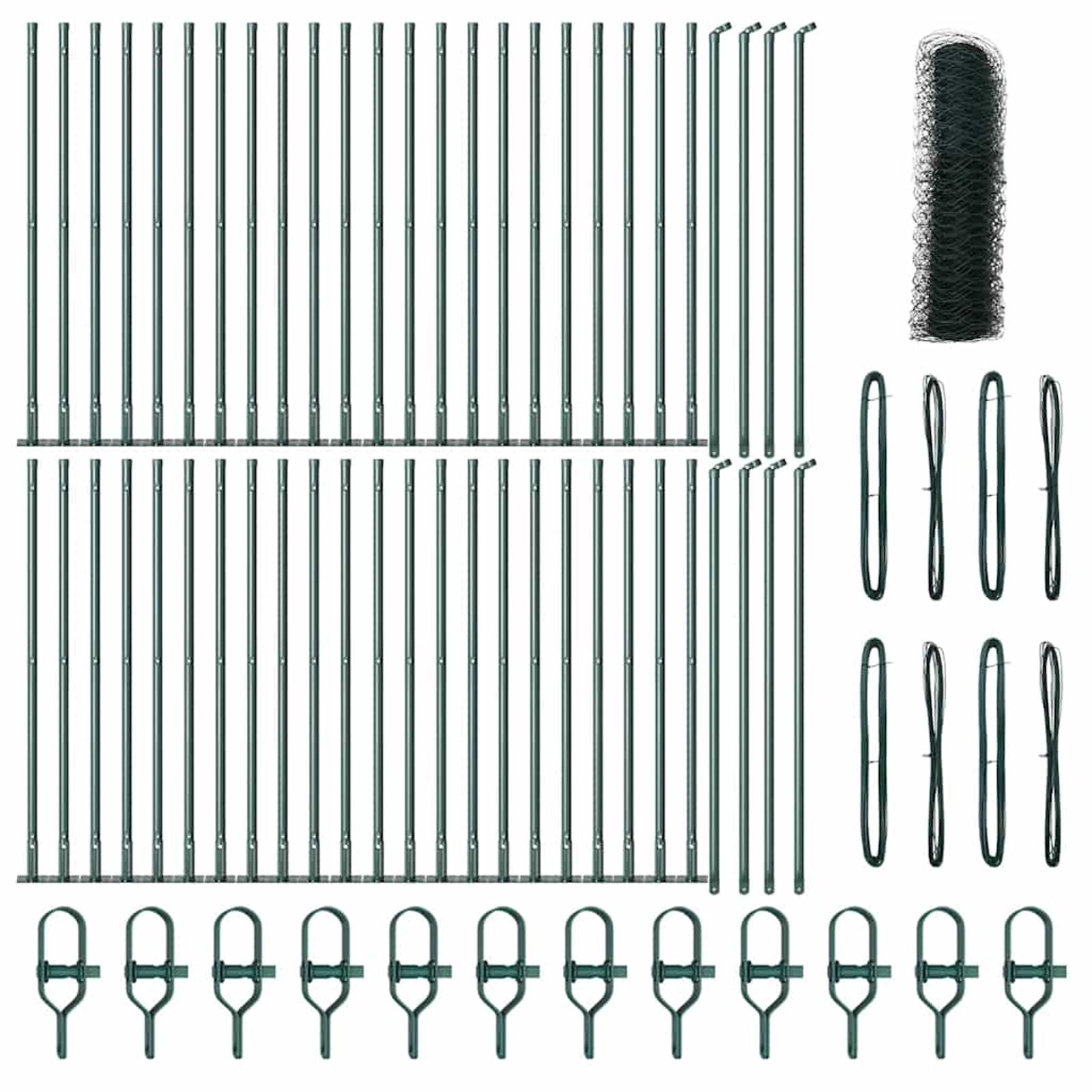 vidaXL Ogrodje s stebri Zelena 0.6 x 100 m Jeklo s PVC premazom