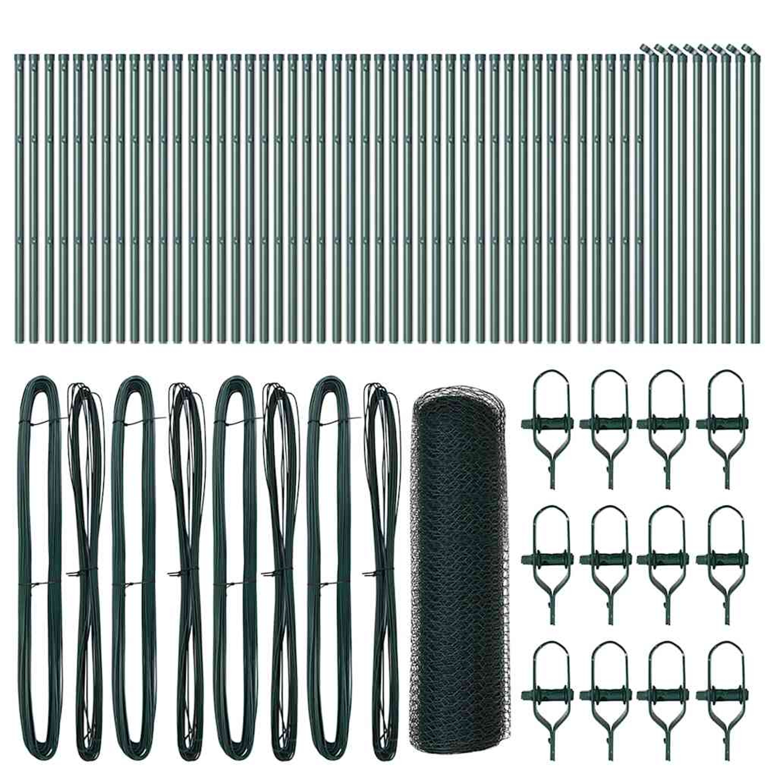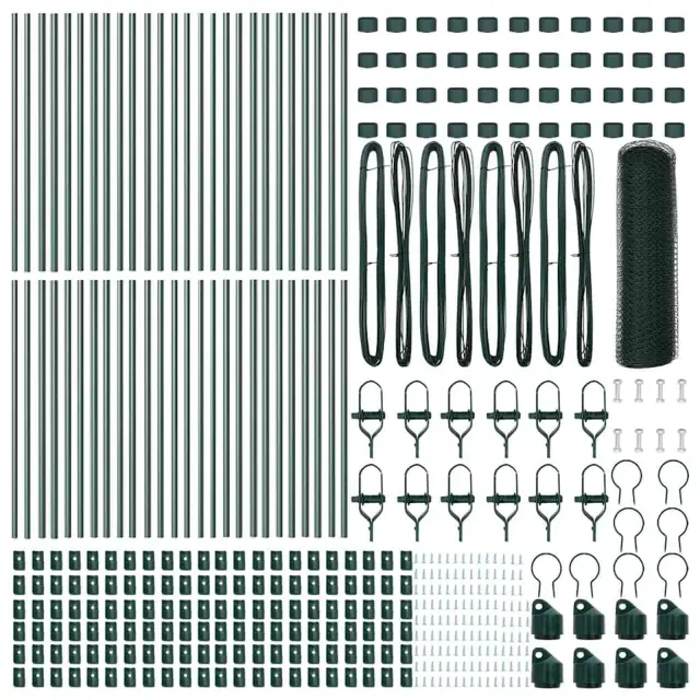 vidaXL Ogrodje s stebri Zelena 0.6 x 100 m Jeklo s PVC premazom