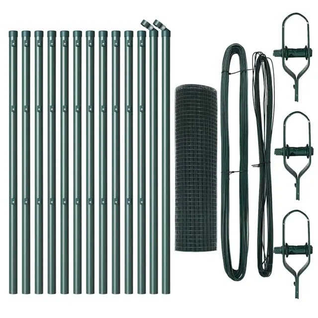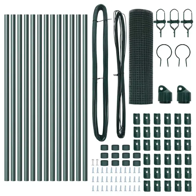 vidaXL Ogrodje s stebri Zelena 0.6 x 25 m Jeklo