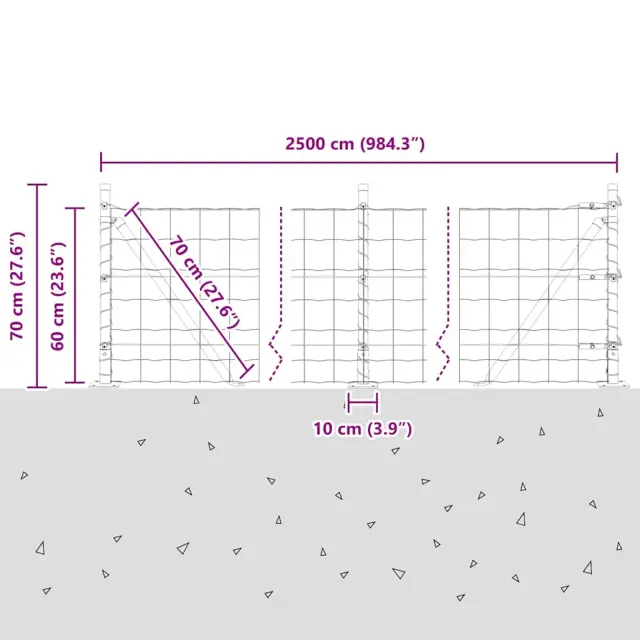 vidaXL Ogrodje s stebri Zelena 0.6 x 25 m Jeklo
