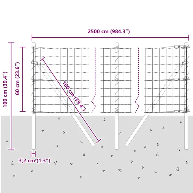 vidaXL Ogrodje s stebri Zelena 0.6 x 25 m Jeklo