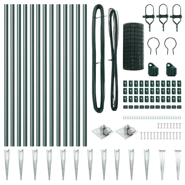 vidaXL Ogrodje s stebri Zelena 0.6 x 25 m Jeklo