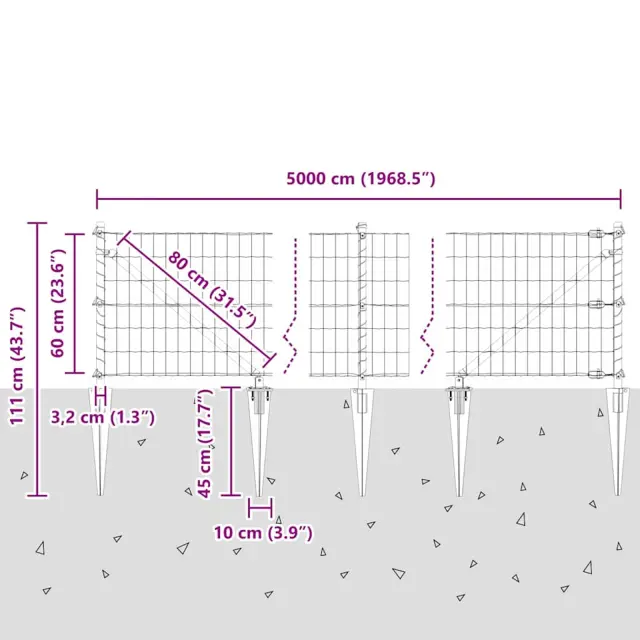 vidaXL Ogrodje s stebri Zelena 0.6 x 50 m Jeklo