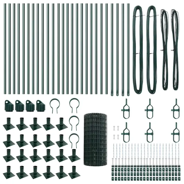 vidaXL Ogrodje s stebri Zelena 0.6 x 50 m Jeklo