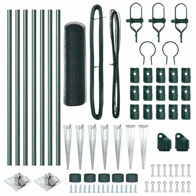 vidaXL Ogrodje s stebri Zelena 0.8 x 10 m Jeklo s PVC premazom