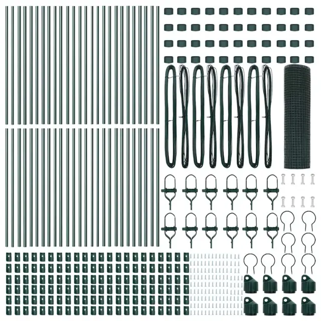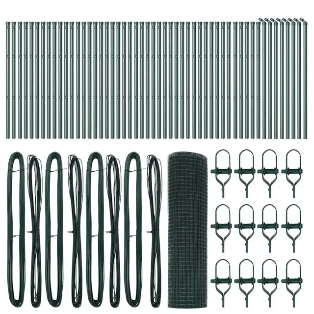 vidaXL Ogrodje s stebri Zelena 0.8 x 100 m Jeklo