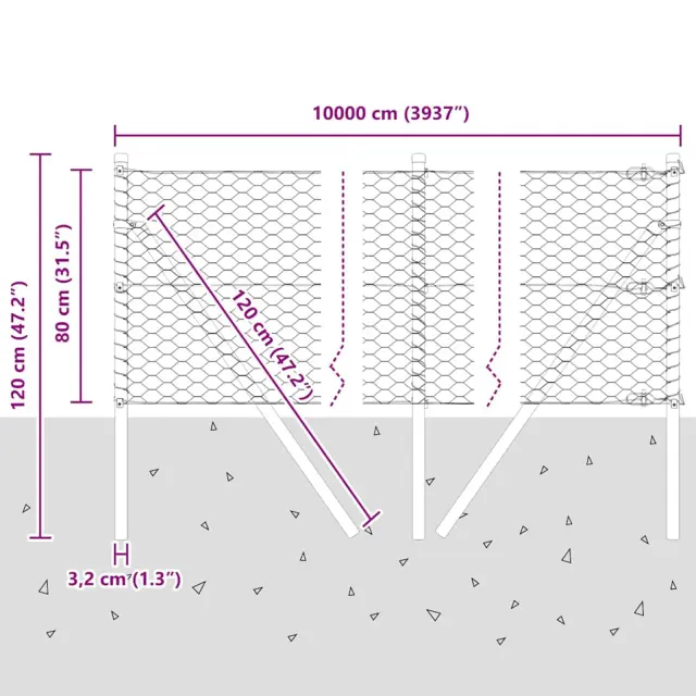 • Splošne dimenzije: 10000 x 3.2 x 80 cm (D x Š x V)