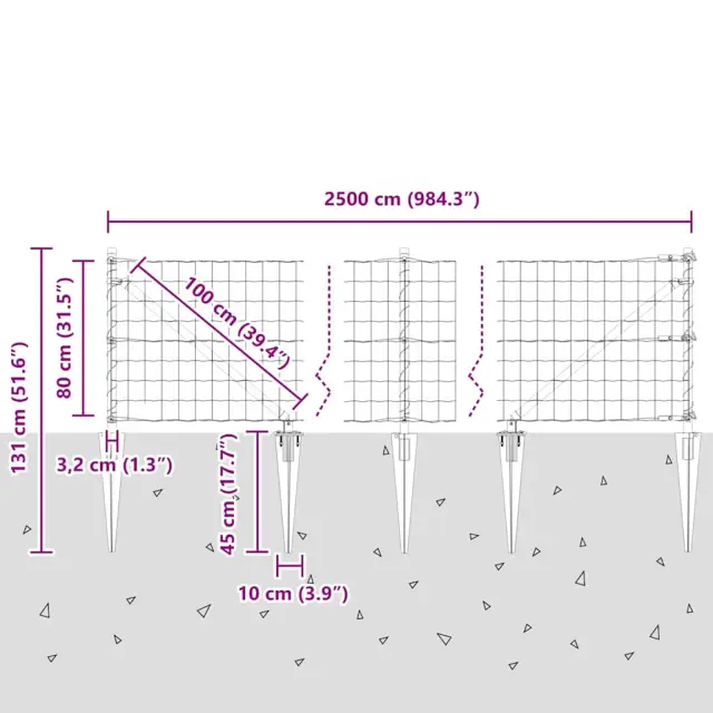 vidaXL Ogrodje s stebri Zelena 0.8 x 25 m Jeklo