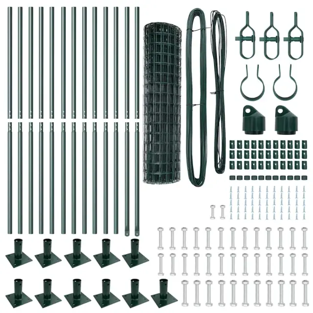 vidaXL Ogrodje s stebri Zelena 0.8 x 25 m Jeklo