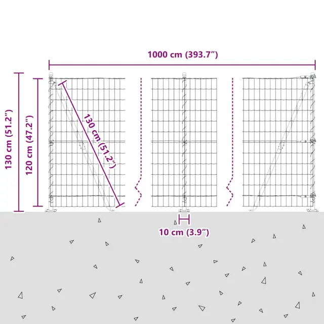 vidaXL Ogrodje s stebri Zelena 1.2 x 10 m Jeklo