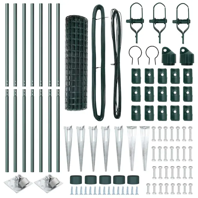 vidaXL Ogrodje s stebri Zelena 1.2 x 10 m Jeklo