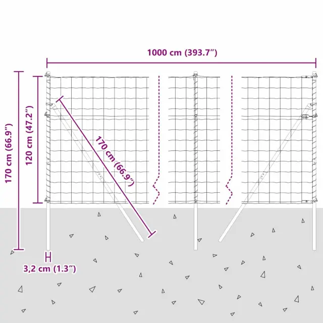 vidaXL Ogrodje s stebri Zelena 1.2 x 10 m Jeklo