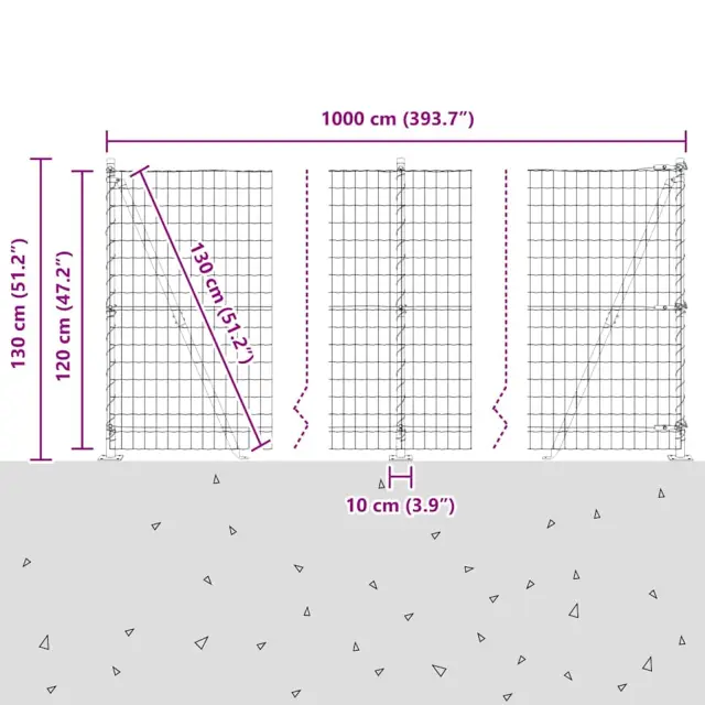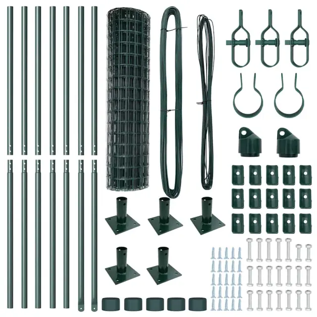 vidaXL Ogrodje s stebri Zelena 1.2 x 10 m Jeklo