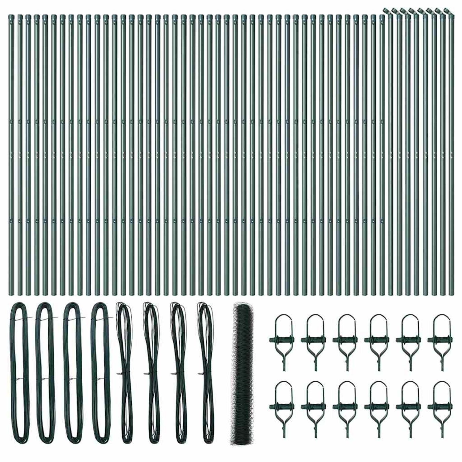 vidaXL Ogrodje s stebri Zelena 1.2 x 100 m Jeklo s PVC premazom