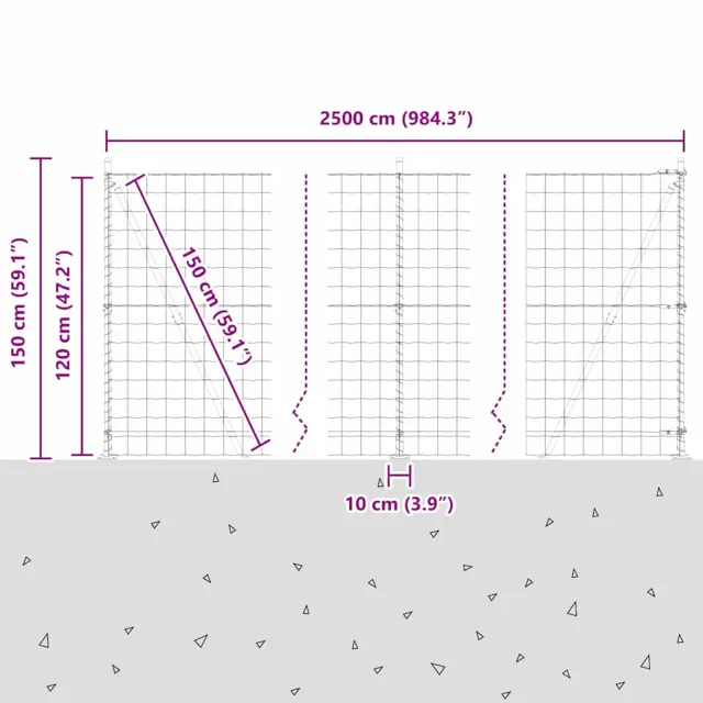 • Splošne dimenzije: 2500 x 3.2 x 120 cm (D x Š x V)