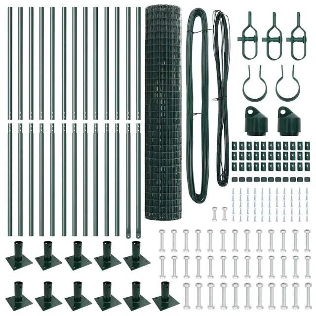 vidaXL Ogrodje s stebri Zelena 1.2 x 25 m Jeklo