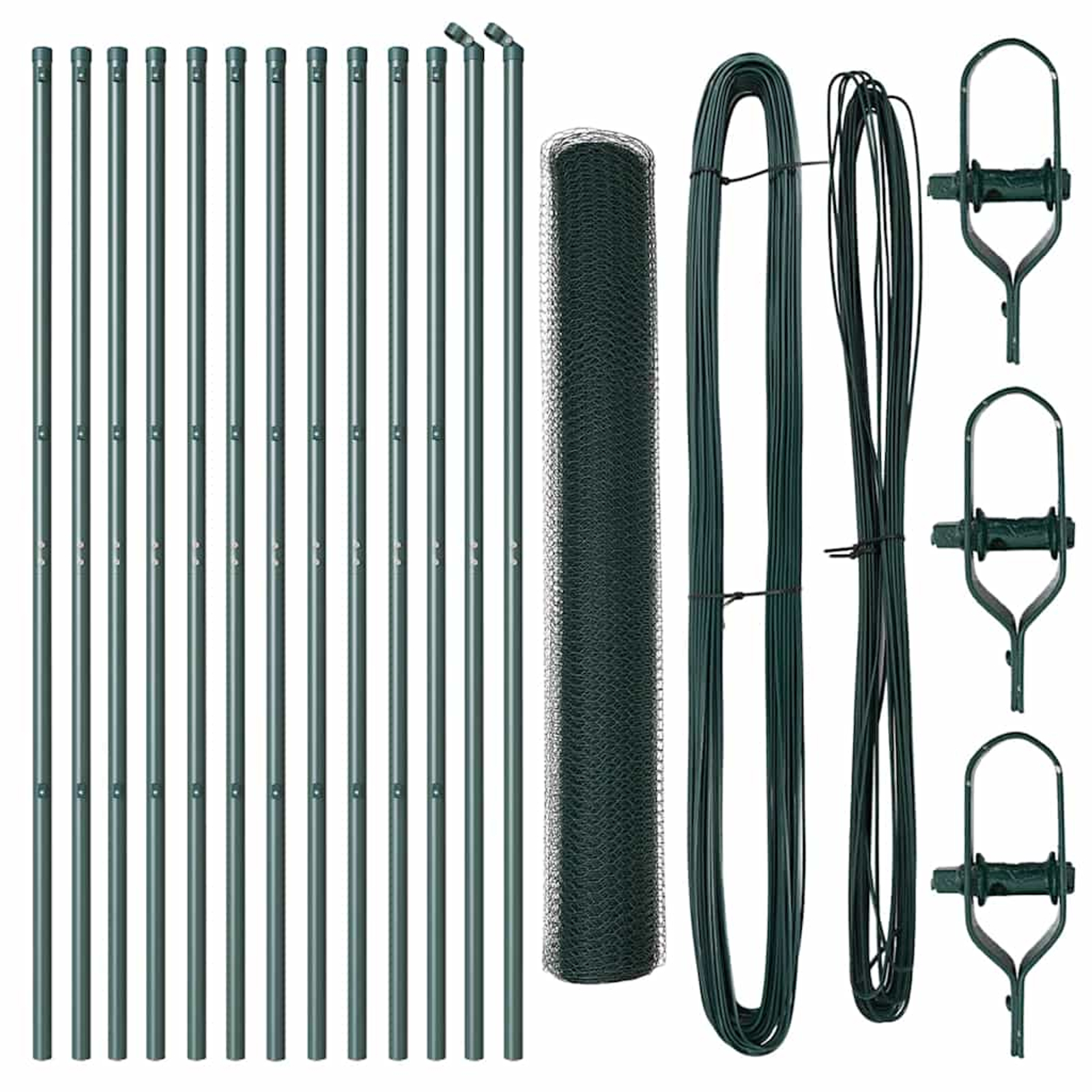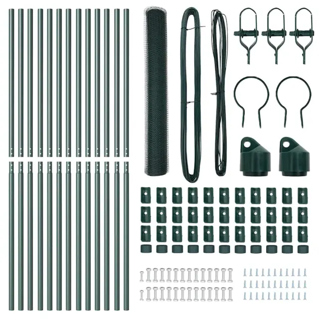 vidaXL Ogrodje s stebri Zelena 1.2 x 25 m Jeklo s PVC premazom