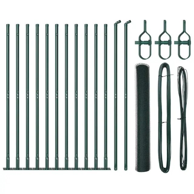 vidaXL Ogrodje s stebri Zelena 1.2 x 25 m Jeklo s PVC premazom