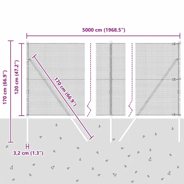 vidaXL Ogrodje s stebri Zelena 1.2 x 50 m Jeklo