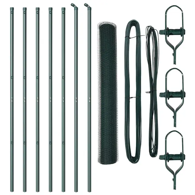 vidaXL Ogrodje s stebri Zelena 1.4 x 10 m Jeklo s PVC premazom